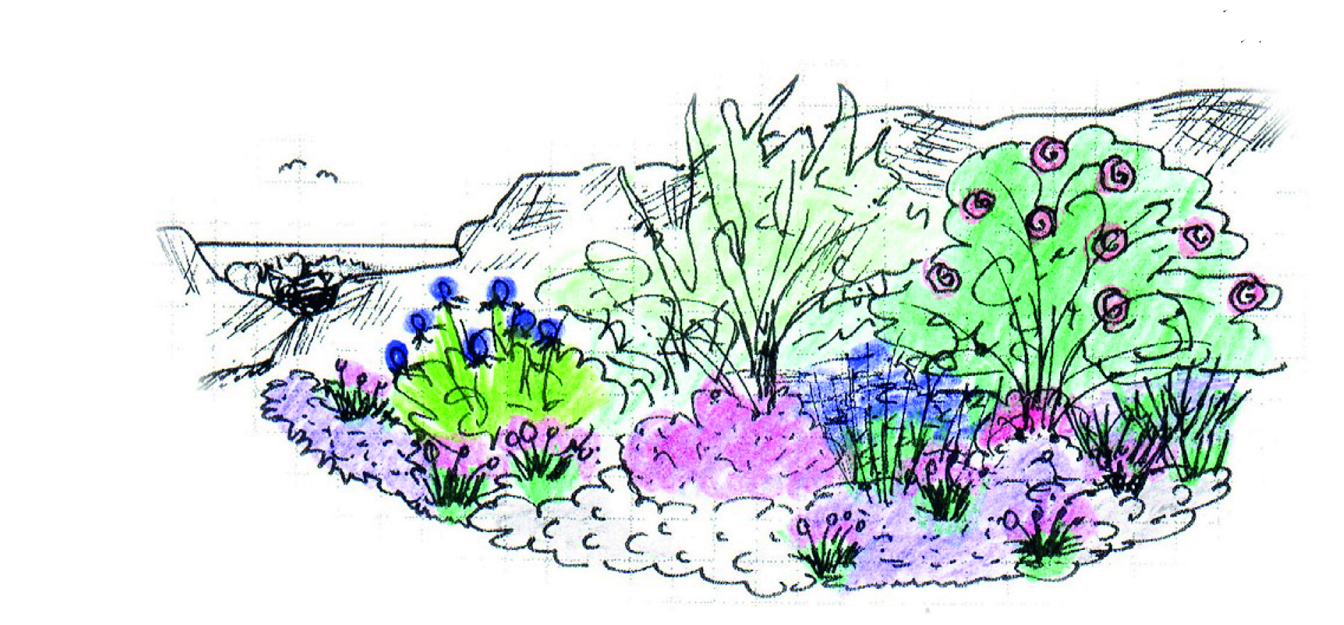 En sol- och torktålig rabatt för trädgården nära kusten. Jorden ska vara väldränerad normal – sandig. En fördel för växterna är om man kan anlägga rabatten i någorlunda lä.